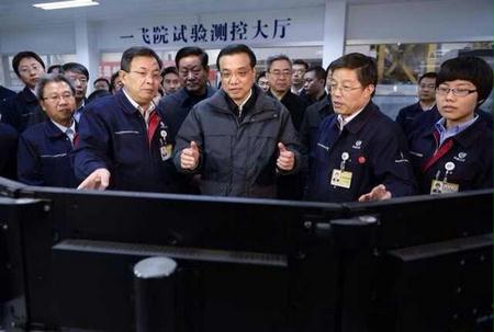 1月28日,李克強總理到中航工業(yè)第一飛機設計研究院考察。他說,這里集成了中國航空工業(yè)的重大技術(shù)研發(fā),中國航空工業(yè)必須要走自己的路。臨行前,研發(fā)人員送給總理一款先進飛機的模型,李克強愉快接過,勉勵大家早日造出真機,不僅要在中國藍天翱翔,也要飛向世界。