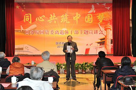 12月19日上午,管理局在國(guó)資委機(jī)關(guān)舉辦了國(guó)務(wù)院國(guó)資委離退休干部“同心共筑中國(guó)夢(mèng)”主題宣講會(huì)。國(guó)資委黨委委員、副秘書長(zhǎng)、管理局黨委書記杜淵泉出席宣講會(huì)并講話。管理局領(lǐng)導(dǎo)班子成員和全系統(tǒng)21個(gè)單位黨政主要負(fù)責(zé)同志、離退休干部、在職干部代表等180人參加了宣講會(huì)。宣講會(huì)上,來(lái)自各離退休干部局(辦)的12位老同志以他們的親身經(jīng)歷和深刻感悟闡釋了他們對(duì)“中國(guó)夢(mèng)”的理解和向往,表達(dá)了他們離崗不離黨、退休不褪色,積極支持國(guó)資國(guó)企改革發(fā)展工作,推動(dòng)科學(xué)發(fā)展,促進(jìn)社會(huì)和諧的心愿和決心。大會(huì)向全委離退休老同志發(fā)出倡議——凝心聚力,共同促成民族復(fù)興偉大中國(guó)夢(mèng)的早日實(shí)現(xiàn)。