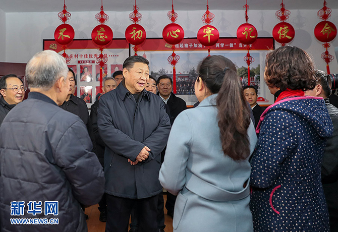12月12日至13日,中共中央總書記、國家主席、中央軍委主席習近平在江蘇徐州市考察。這是12日下午,習近平在潘安湖街道馬莊村黨員活動室與正在學習黨的十九大精神的黨員交流。新華社記者 謝環(huán)馳 攝