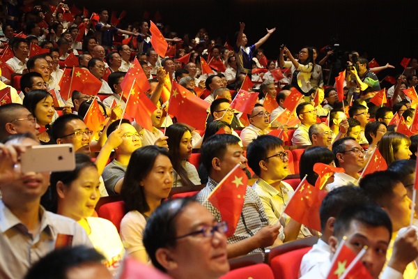 展演活動在全場高聲共唱《我和我的祖國》的旋律中落下帷幕,“我和我的祖國,一刻也不能分割”,悠揚、嘹亮的歌聲在劇場內(nèi)久久回蕩。