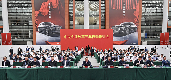 在國企改革三年行動時間過半的關鍵節(jié)點,6月4日,國務院國資委在中國一汽以“現(xiàn)場+視頻”形式召開中央企業(yè)改革三年行動推進會,總結工作成效,推廣改革經(jīng)驗,以典型示范帶動改革深化。國務院國資委黨委書記、主任,國資委全面深化改革領導小組組長郝鵬出席會議并講話強調,要深入學習貫徹習近平總書記重要指示精神,貫徹落實黨中央、國務院決策部署,搶抓寶貴時間窗口、珍惜有利條件形勢,真抓實干、銳意進取,進一步抓緊抓實改革三年行動,更好促進中央企業(yè)高質量發(fā)展,加快建設世界一流企業(yè),為全面建設社會主義現(xiàn)代化國家作出更大貢獻。國務院國資委黨委委員、副主任翁杰明主持會議。國務院國資委黨委委員、副主任任洪斌,黨委委員、秘書長彭華崗出席會議。