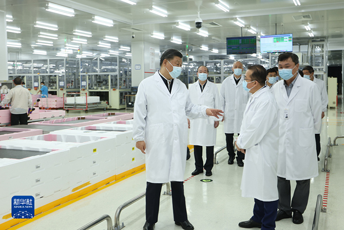 4月10日至13日,中共中央總書記、國家主席、中央軍委主席習近平在廣東考察。這是12日下午,習近平在廣汽埃安新能源汽車股份有限公司考察。新華社記者 鞠鵬 攝