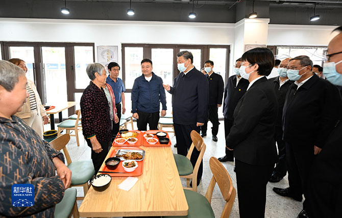 5月10日,中共中央總書(shū)記、國(guó)家主席、中央軍委主席習(xí)近平在河北省雄安新區(qū)考察,并主持召開(kāi)高標(biāo)準(zhǔn)高質(zhì)量推進(jìn)雄安新區(qū)建設(shè)座談會(huì)。這是10日上午,習(xí)近平在容東片區(qū)南文營(yíng)社區(qū)食堂同就餐的社區(qū)老人親切交流。(新華社記者 李學(xué)仁 攝) 9iW鞍鋼集團(tuán)網(wǎng)站