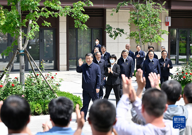 5月10日,中共中央總書(shū)記、國(guó)家主席、中央軍委主席習(xí)近平在河北省雄安新區(qū)考察,并主持召開(kāi)高標(biāo)準(zhǔn)高質(zhì)量推進(jìn)雄安新區(qū)建設(shè)座談會(huì)。這是10日上午,習(xí)近平在容東片區(qū)南文營(yíng)社區(qū)考察時(shí)向社區(qū)居民揮手致意。(新華社記者 殷博古 攝) 9iW鞍鋼集團(tuán)網(wǎng)站