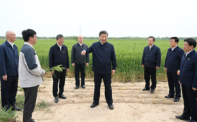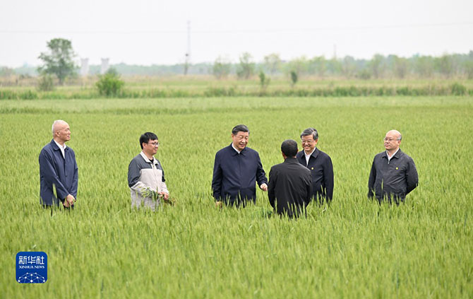 5月11日至12日,中共中央總書記、國家主席、中央軍委主席習(xí)近平在河北考察,并主持召開深入推進(jìn)京津冀協(xié)同發(fā)展座談會。這是11日上午,習(xí)近平在滄州市黃驊市舊城鎮(zhèn)仙莊片區(qū)旱堿地麥田考察。(新華社記者 李學(xué)仁 攝)