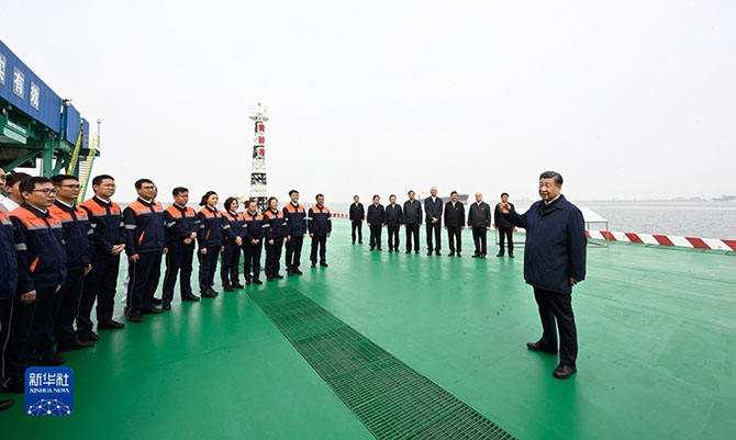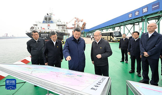 5月11日至12日,中共中央總書記、國家主席、中央軍委主席習(xí)近平在河北考察,并主持召開深入推進(jìn)京津冀協(xié)同發(fā)展座談會。這是11日下午,習(xí)近平在滄州市黃驊港煤炭港區(qū)碼頭考察。(新華社記者 李學(xué)仁 攝)