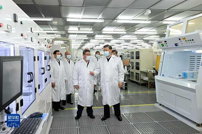 12日上午,習(xí)近平來到位于石家莊市的中國電科產(chǎn)業(yè)基礎(chǔ)研究院考察調(diào)研,了解企業(yè)發(fā)展歷程及產(chǎn)品研發(fā)、加強(qiáng)軍民融合發(fā)展、提升自主保障能力建設(shè)等情況,走進(jìn)生產(chǎn)車間察看芯片生產(chǎn)流程。習(xí)近平指出,加快建設(shè)科技強(qiáng)國是全面建設(shè)社會主義現(xiàn)代化國家、全面推進(jìn)中華民族偉大復(fù)興的戰(zhàn)略支撐,必須瞄準(zhǔn)國家戰(zhàn)略需求,系統(tǒng)布局關(guān)鍵創(chuàng)新資源,發(fā)揮產(chǎn)學(xué)研深度融合優(yōu)勢,不斷在關(guān)鍵核心技術(shù)上取得新突破。他勉勵科技工作者再接再厲、勇攀科技高峰,不斷攻克前沿技術(shù),打造更多科技自立自強(qiáng)的大國重器。