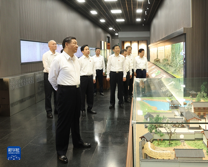 7月29日,中共中央總書(shū)記、國(guó)家主席、中央軍委主席習(xí)近平在四川考察結(jié)束返京途中,來(lái)到陜西省漢中市考察。這是習(xí)近平參觀漢中市博物館有關(guān)歷史文物展陳。(新華社記者 鞠鵬 攝)