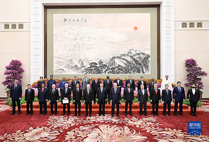 10月18日上午,國家主席習(xí)近平在北京人民大會(huì)堂出席第三屆“一帶一路”國際合作高峰論壇開幕式并發(fā)表題為《建設(shè)開放包容、互聯(lián)互通、共同發(fā)展的世界》的主旨演講。這是會(huì)前,習(xí)近平同出席高峰論壇的外國國家元首、政府首腦和國際組織負(fù)責(zé)人等國際貴賓集體合影。 新華社記者 黃敬文 攝 Egb鞍鋼集團(tuán)網(wǎng)站