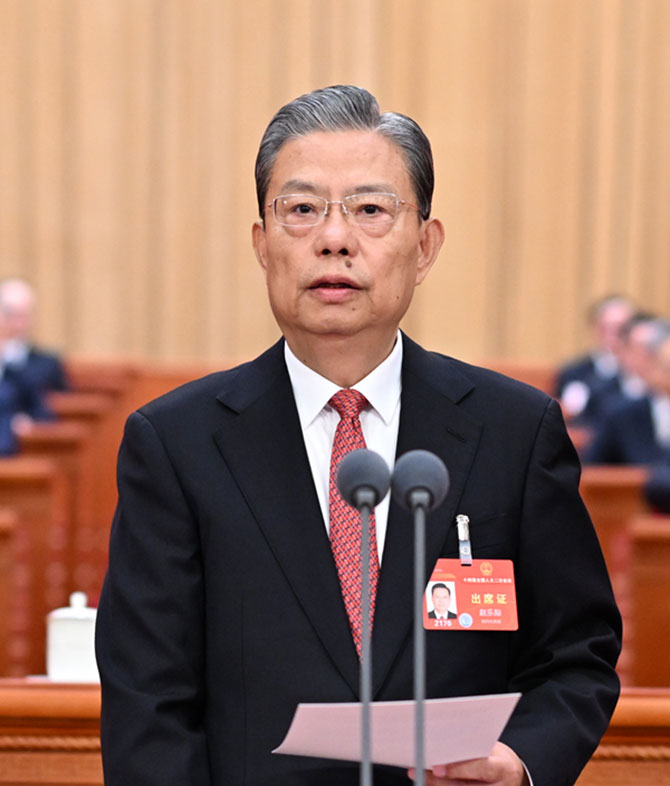 3月5日,第十四屆全國人民代表大會第二次會議在北京人民大會堂開幕。趙樂際主持開幕會。新華社記者 謝環(huán)馳 攝