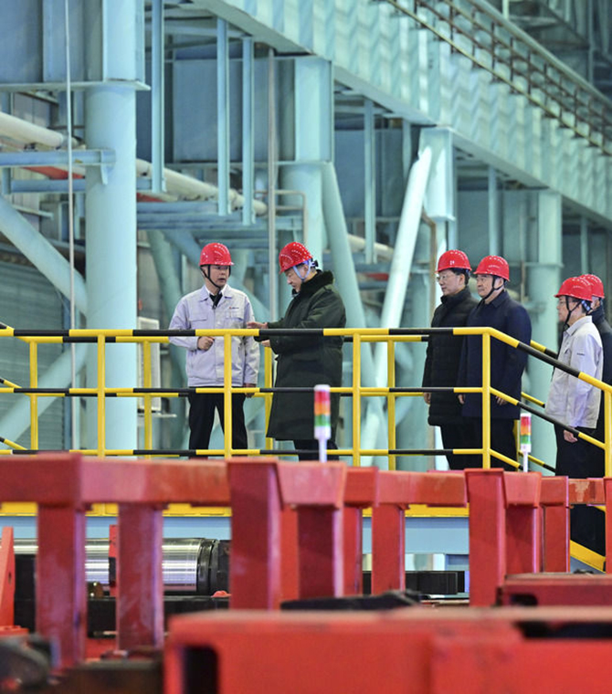 1月22日至24日,中共中央總書記、國家主席、中央軍委主席習(xí)近平冒著嚴(yán)寒來到遼寧,看望慰問基層干部群眾。這是23日下午,習(xí)近平在本溪市考察本鋼板材冷軋總廠第三冷軋廠車間。新華社記者 謝環(huán)馳 攝