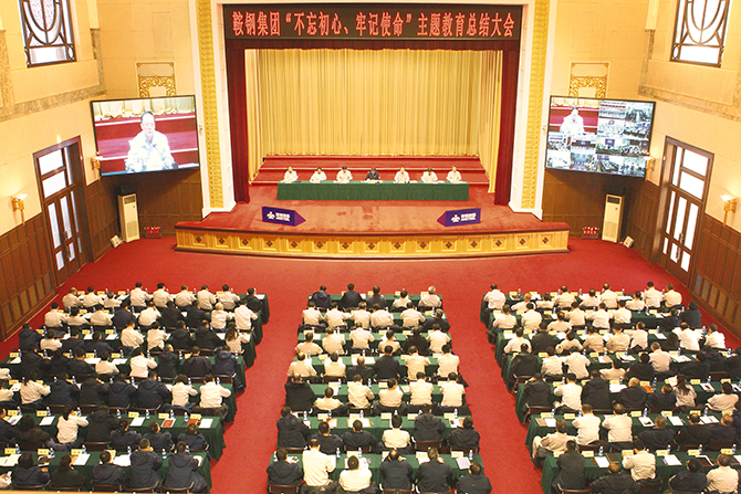 譚成旭在會(huì)上傳達(dá)了中央“不忘初心、牢記使命”主題教育總結(jié)大會(huì)精神,并代表鞍鋼集團(tuán)黨委作主題教育總結(jié)報(bào)告。他指出,按照黨中央的統(tǒng)一安排部署,在中央第三十四指導(dǎo)組、中央第十三巡回督導(dǎo)組的精心指導(dǎo)下,鞍鋼集團(tuán)黨委把開展“不忘初心、牢記使命”主題教育作為一項(xiàng)重大政治任務(wù),提高政治站位,強(qiáng)化組織領(lǐng)導(dǎo),主題教育取得了扎實(shí)成效。對(duì)習(xí)近平新時(shí)代中國(guó)特色社會(huì)主義思想的理解更加深刻,理論學(xué)習(xí)的效果顯著增強(qiáng),提高了知信行合一能力;對(duì)堅(jiān)持黨的領(lǐng)導(dǎo)、加強(qiáng)黨的建設(shè)的“根”“魂”思想更加牢固,思想政治的洗禮得到升華,堅(jiān)定了做好黨建工作的信心和決心;對(duì)習(xí)近平總書記重要指示批示精神和黨中央重大決策部署的執(zhí)行更加堅(jiān)決,干事創(chuàng)業(yè)、擔(dān)當(dāng)作為的精氣神持續(xù)提振,推動(dòng)了企業(yè)改革發(fā)展穩(wěn)定各項(xiàng)工作;對(duì)踐行黨的群眾路線的行動(dòng)更加自覺,為民服務(wù)的能力不斷提高,解決了職工群眾急難愁盼問題;對(duì)永葆為民務(wù)實(shí)清廉政治本色的淬煉更加堅(jiān)固,清正廉潔的表率作用進(jìn)一步發(fā)揮,營(yíng)造了風(fēng)清氣正的改革發(fā)展環(huán)境;對(duì)新時(shí)代深化黨的自我革命的決心更加堅(jiān)定,黨的先進(jìn)性和純潔性進(jìn)一步凈化,推動(dòng)了全面從嚴(yán)治黨向縱深發(fā)展。
