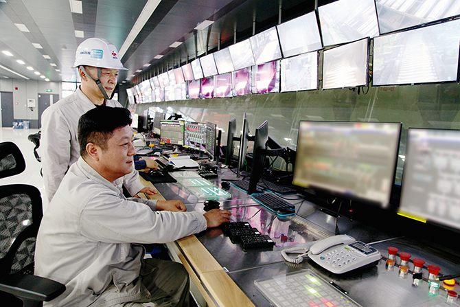 圖為2150生產(chǎn)線技術(shù)人員嚴(yán)控軋制過程 黃獻東 攝