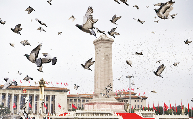 激昂的樂(lè)曲響起,全場(chǎng)高唱《歌唱祖國(guó)》。10萬(wàn)羽和平鴿展翅高飛,10萬(wàn)只彩色氣球騰空而起。天安門(mén)廣場(chǎng)上的各界群眾朝著天安門(mén)城樓方向歡呼致敬,習(xí)近平等向大家揮手致意。城樓上下融通起真情交匯的心橋,廣場(chǎng)內(nèi)外匯聚成歡歌笑語(yǔ)的海洋,共同慶祝中國(guó)共產(chǎn)黨百年華誕,共同祝愿祖國(guó)和世界的明天更加美好。